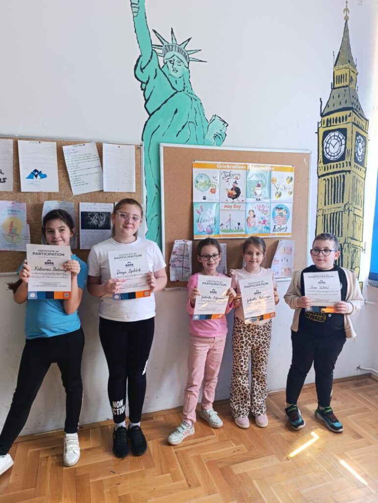 Ove se godine u našoj školi održalo već tradicionalno 14. međunarodno jezično natjecanje u poznavanju engleskog jezika tj. Hippo English Langauage Olympiad , u organizaciji HIPPO koordinatorice učiteljice Marine Štambuk Poparić i nadzornice natjecanja knjižničarke Diane Silić.